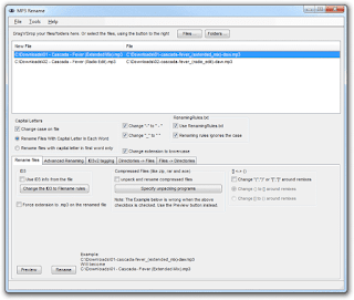MP3Pal - нет поддержки командной строки и программа не запоминает шаблон переименования для операций. С такими фичами была бы незаменима.JJ MP3 Renamer(сайт в коме, поможет web archive). То же неудобство - надо выбирать шаблон переименования. Не понравилось то, что программа без спроса добавляет команду в контекстное меню.